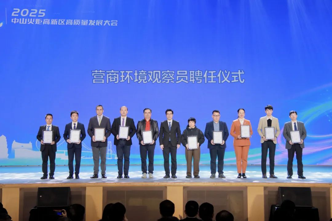 會議頒發(fā)了火炬區(qū)“招商大使”“營商環(huán)境觀察員”聘書,其中健康基地園區(qū)企業(yè)代表分別占8名和3名。