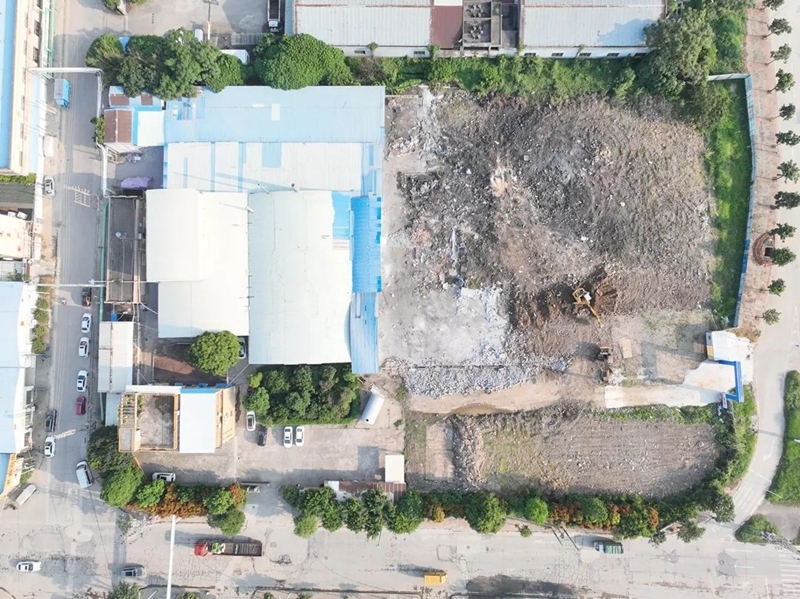 泓嵩產(chǎn)業(yè)園項目占地面積20畝,于2023年拆除低效廠房17.57畝,規(guī)劃新建廠房總面積26667㎡,分兩期建設(shè)。項目一期6360㎡已于2023年9月動工,2024年10月竣工,目前已引入廣東瓏品糧食有限公司智能化精細稻米加工項目。