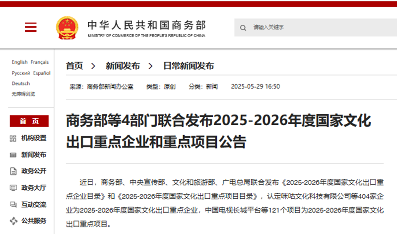 自2007年以來(lái),商務(wù)部、中央宣傳部、文化和旅游部、廣電總局等4部門聯(lián)合,每?jī)赡暝u(píng)審認(rèn)定一批國(guó)家文化出口重點(diǎn)企業(yè)和重點(diǎn)項(xiàng)目,旨在培育一批具有國(guó)際競(jìng)爭(zhēng)力的外向型文化企業(yè),推動(dòng)對(duì)外文化貿(mào)易高質(zhì)量發(fā)展,迄今累計(jì)評(píng)選出3329家企業(yè)、1298個(gè)項(xiàng)目,范圍涵蓋新聞出版、廣播影視、文化藝術(shù)、游戲動(dòng)漫等文化貿(mào)易領(lǐng)域。在政策引導(dǎo)下,一大批文化企業(yè)積極開拓國(guó)際市場(chǎng),文化出口規(guī)模不斷擴(kuò)大,國(guó)際競(jìng)爭(zhēng)力不斷提升,成為推動(dòng)文化走出去的骨干力量。