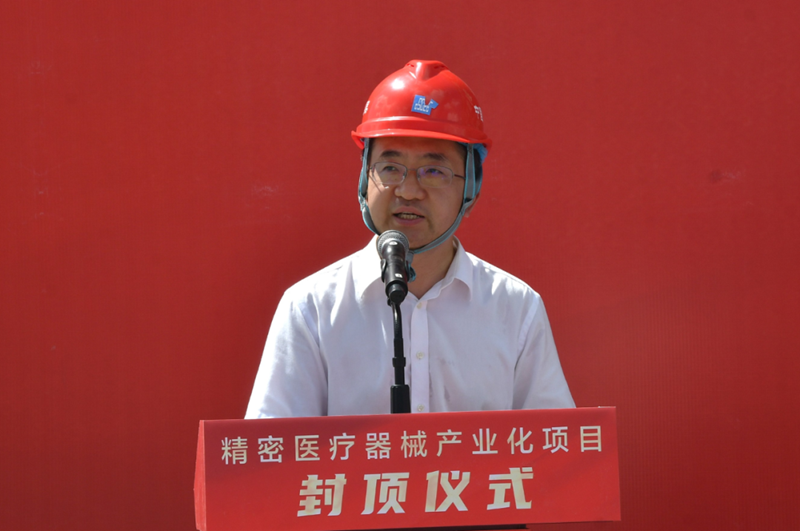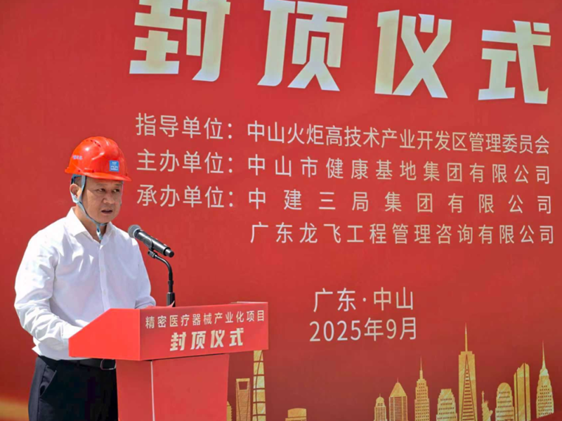 區(qū)黨工委委員、管委會(huì)副主任鐘劍在致辭中表示,精密醫(yī)療器械產(chǎn)業(yè)化項(xiàng)目是火炬高新區(qū)推動(dòng)“三舊”改造和產(chǎn)業(yè)升級(jí)的標(biāo)桿項(xiàng)目。從開工到封頂用時(shí)一年,充分展現(xiàn)出“火炬速度”和“中山效率”,體現(xiàn)了健康基地集團(tuán)作為國(guó)企的擔(dān)當(dāng)。該項(xiàng)目高度契合國(guó)家與大灣區(qū)產(chǎn)業(yè)戰(zhàn)略方向,與中山市打造生物醫(yī)藥與健康支柱產(chǎn)業(yè)的部署同頻共振,依托健康基地集團(tuán)專業(yè)的運(yùn)營(yíng)基礎(chǔ),將有力補(bǔ)強(qiáng)我區(qū)生物醫(yī)藥產(chǎn)業(yè)鏈、提升科創(chuàng)能級(jí)。他希望各方以“快、好、省、廉”為標(biāo)準(zhǔn),牢牢守住質(zhì)量安全底線,全力推動(dòng)項(xiàng)目早竣工、早投產(chǎn)、早見效;鹁娓咝聟^(qū)將持續(xù)優(yōu)化營(yíng)商環(huán)境,全力做好服務(wù),支持項(xiàng)目早日建成達(dá)產(chǎn)、打造產(chǎn)業(yè)新高地,為中山高質(zhì)量發(fā)展貢獻(xiàn)更大力量。