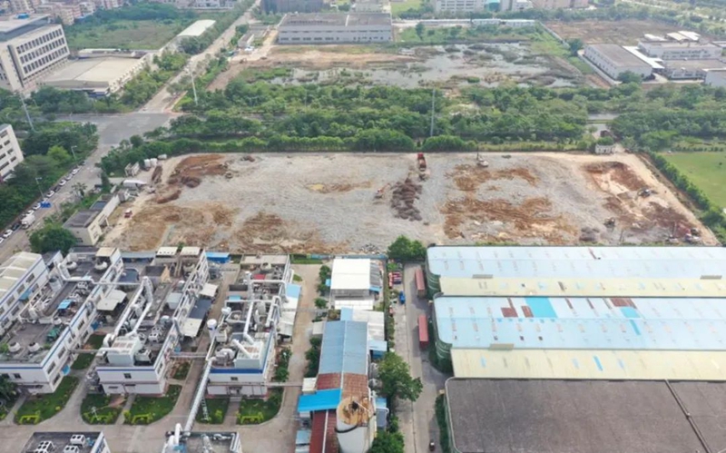 泓嵩產(chǎn)業(yè)園項目占地面積20畝,于2023年拆除低效廠房17.57畝,規(guī)劃新建廠房總面積26667㎡,分兩期建設(shè)。項目一期6360㎡已于2023年9月動工,2024年10月竣工,目前已引入廣東瓏品糧食有限公司智能化精細稻米加工項目。